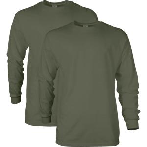 • Gildan Adult Ultra Cotton Long Sleeve T-Shirt, Style G2400, Multipack(Military Green (2-pack))