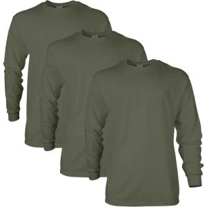 • Gildan Adult Ultra Cotton Long Sleeve T-Shirt, Style G2400, Multipack(Military Green (3-pack))