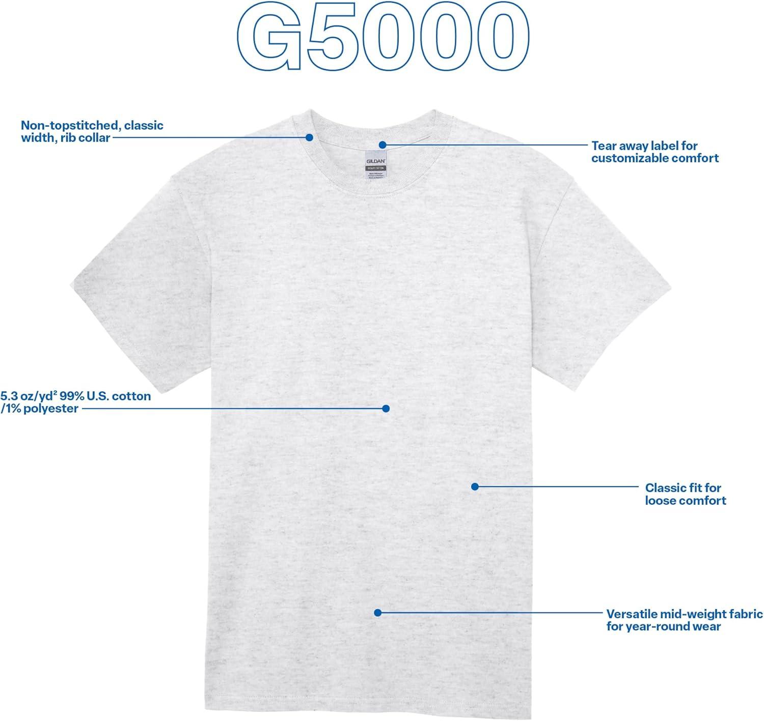 Gildan Adult Heavy Cotton T-Shirt, Style G5000, Multipack(Ash Grey (72-pack))