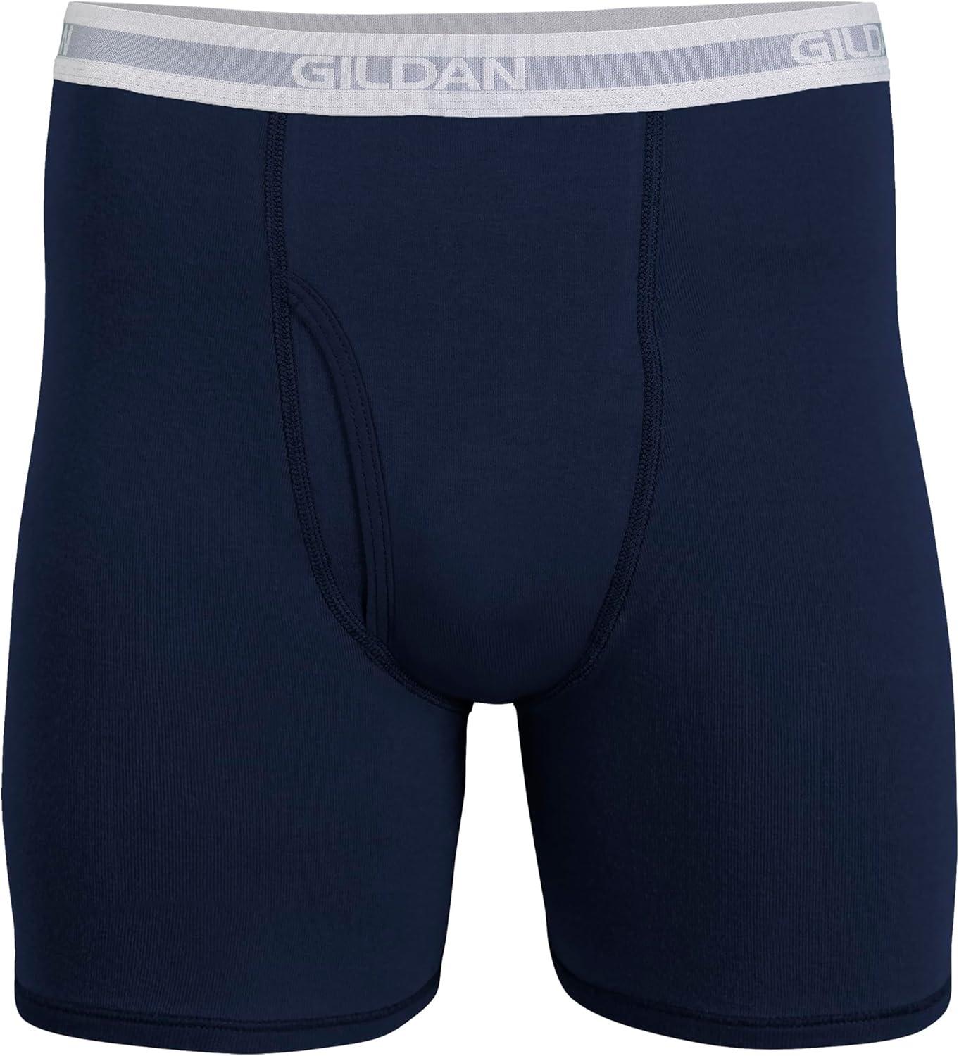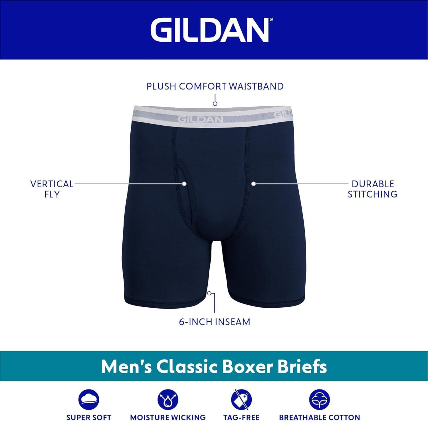 Gildan Men’s Underwear Covered Waistband Boxer Briefs, Multipack(Mixed Navy (10-pack Classic Length))