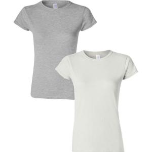 • Gildan Womens Softstyle Cotton T-Shirt, Style G64000l, Multipack(White+sportgray)