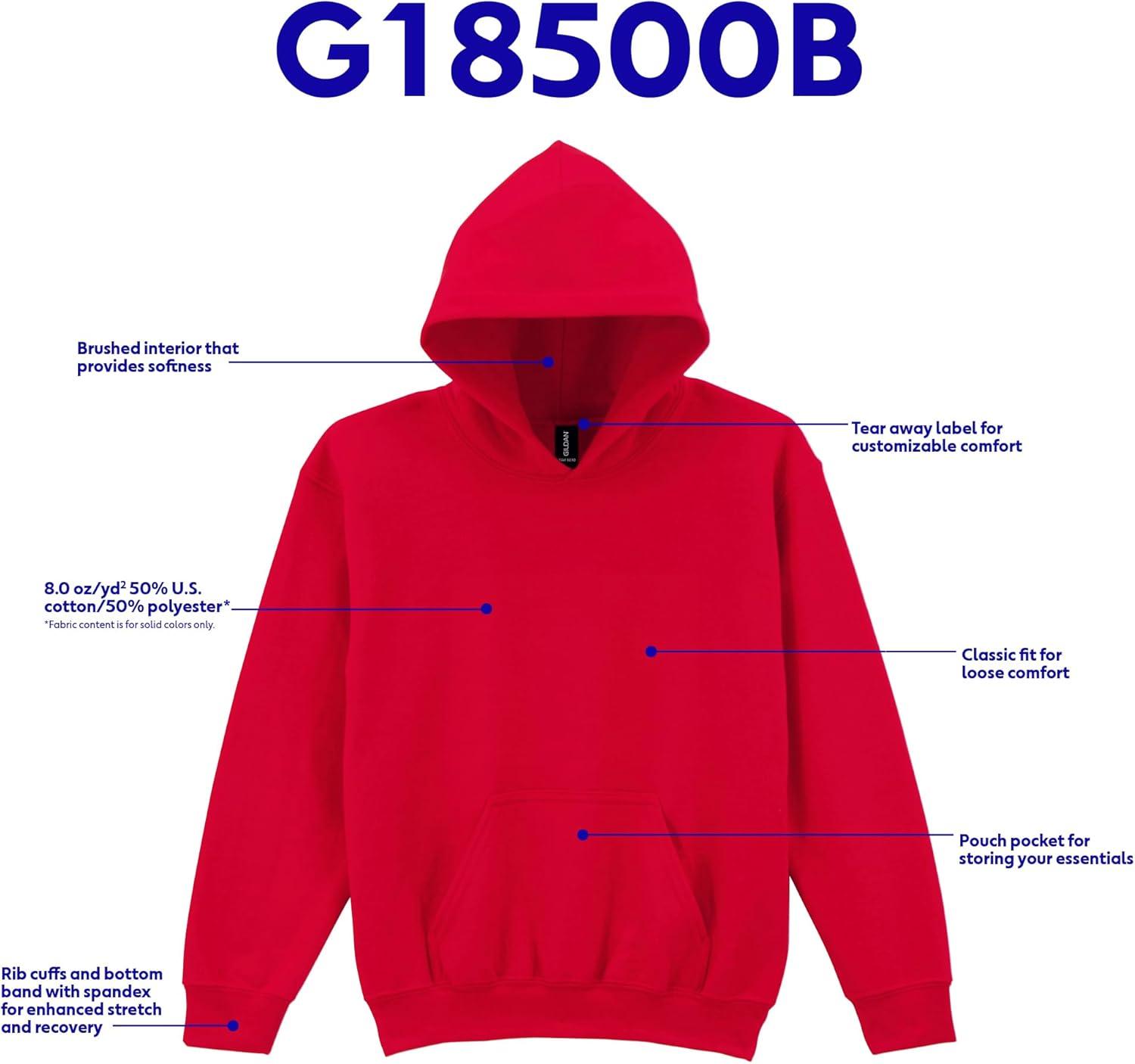 Gildan Youth Hoodie Sweatshirt, Style G18500B(Red)