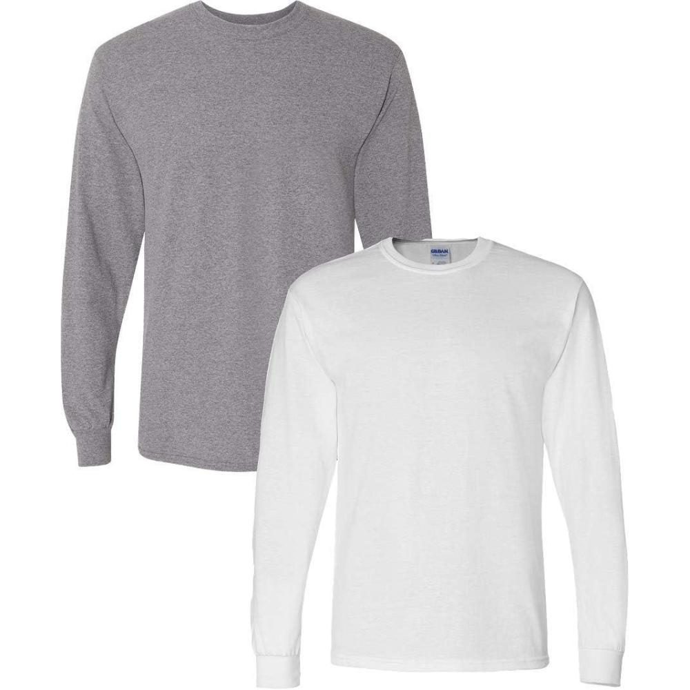 Gildan Adult DryBlend Long Sleeve T-Shirt, Style G8400, 2-Pack(Graphiteheather+white)