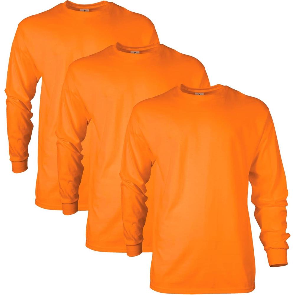 Gildan Adult Ultra Cotton Long Sleeve T-Shirt, Style G2400, Multipack(Safety Orange (3-pack))