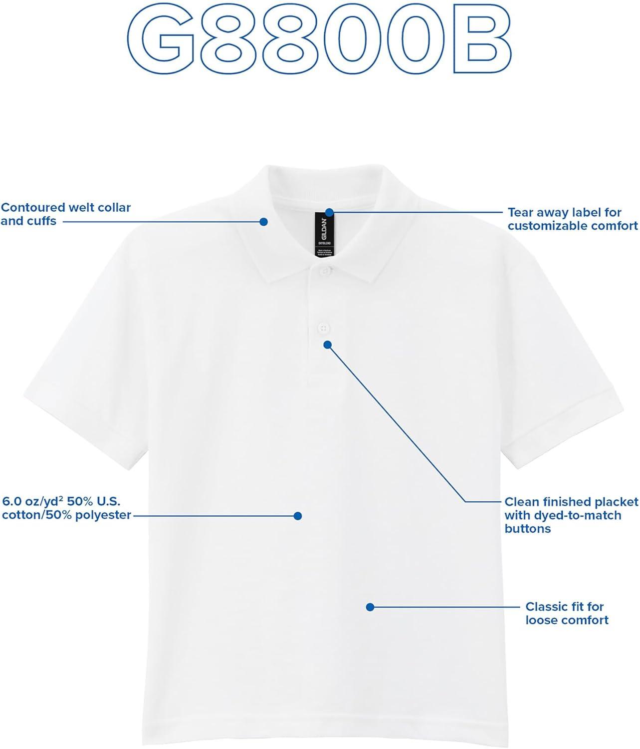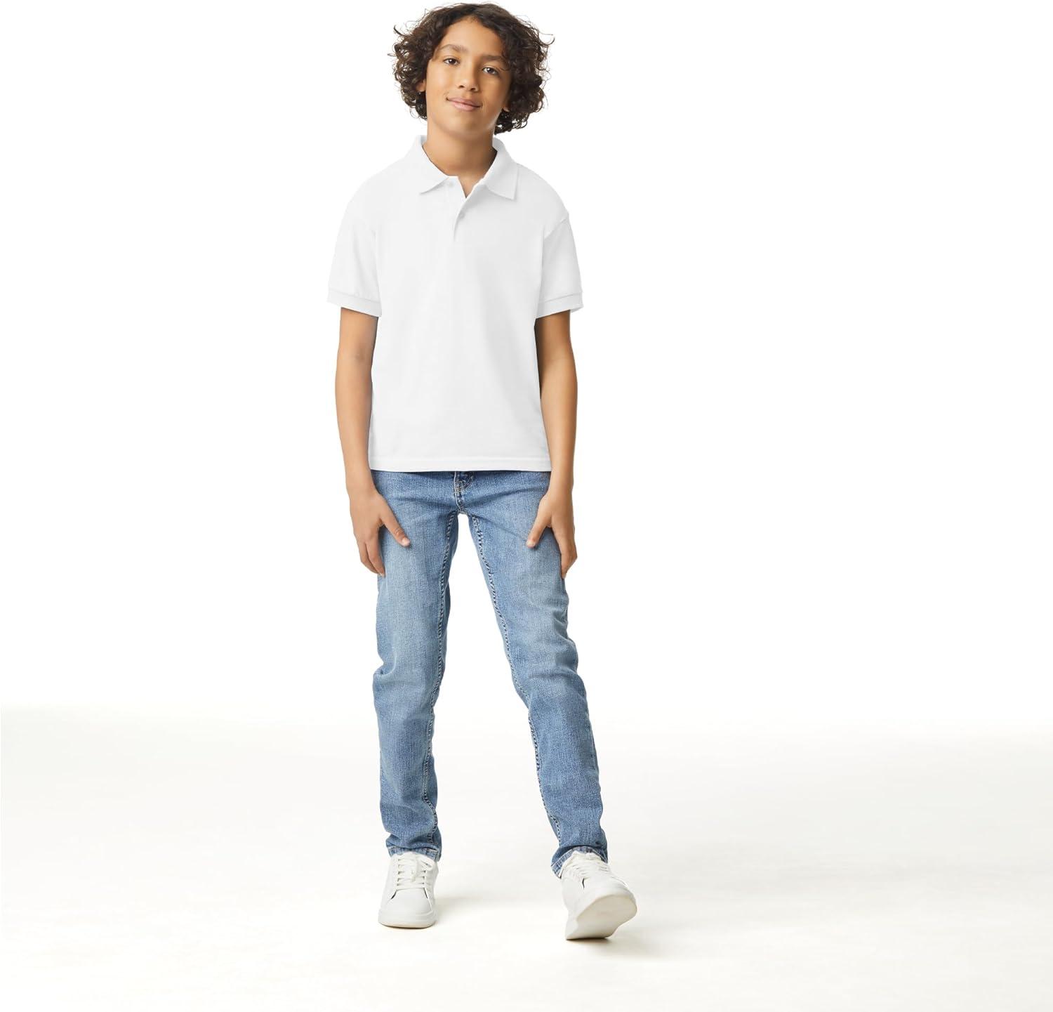Gildan Kids’ DryBlend Short Sleeve Polo, Style G8800b, 3-Pack(White)