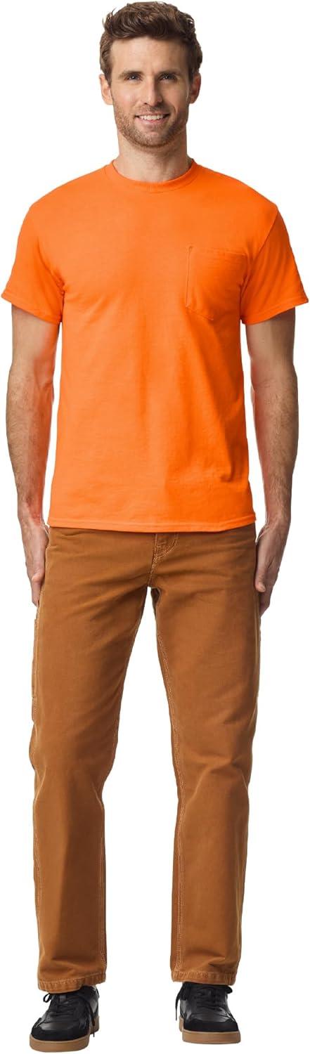 Gildan Mens DryBlend Workwear T-Shirts with Pocket, 2-Pack(Safety Orange)