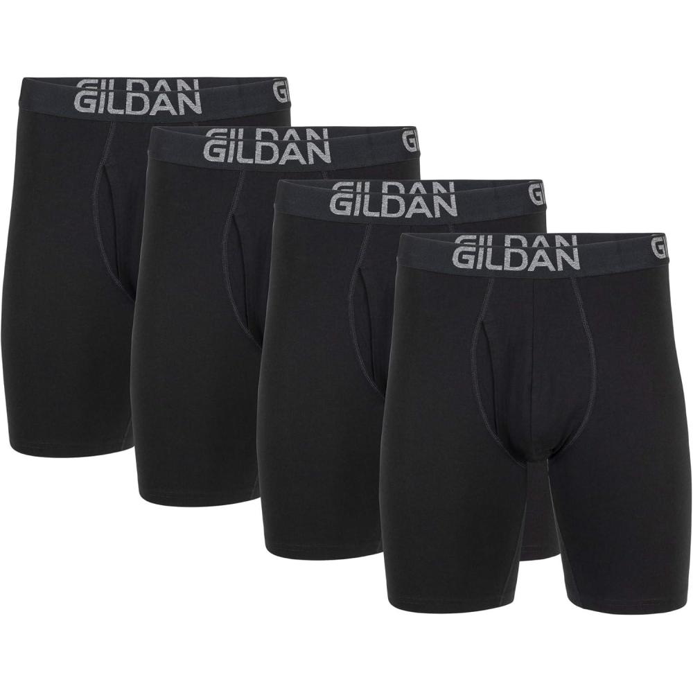 Gildan Men’s Underwear Cotton Stretch Boxer Briefs, Multipack(Black Soot (4-pack Long Leg))