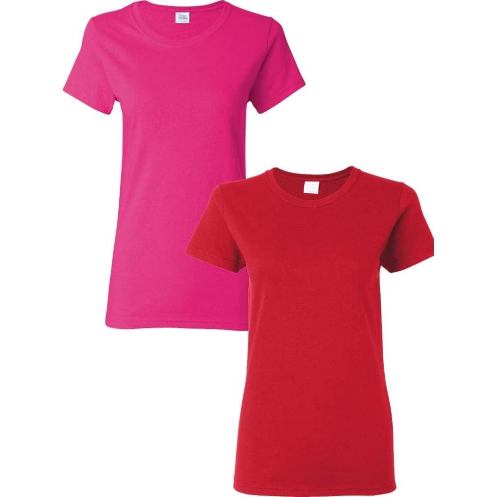 Gildan Women’s Heavy Cotton T-Shirt, Style G5000L, 2-Pack(Heliconia-red)