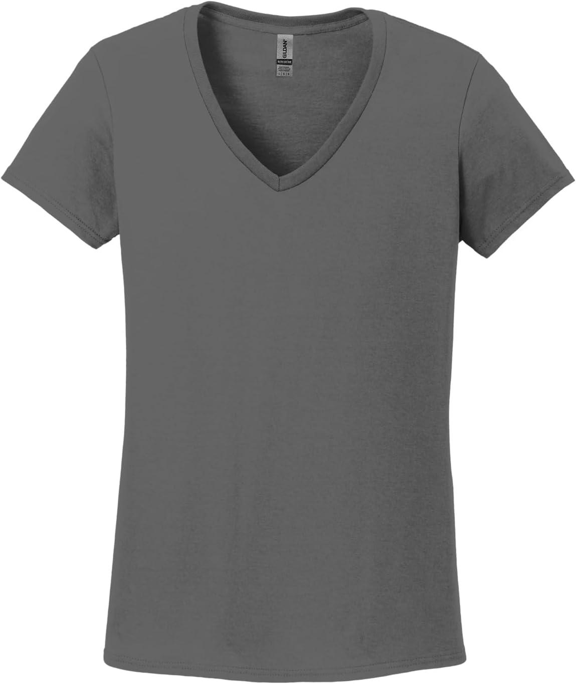 Gildan Women’s Heavy Cotton V-Neck T-Shirt, 2-Pack((1) Azalea + (1) Charcoal)