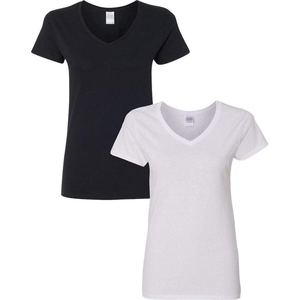 Gildan Women’s Heavy Cotton V-Neck T-Shirt, 2-Pack((1) Black + (1) White)