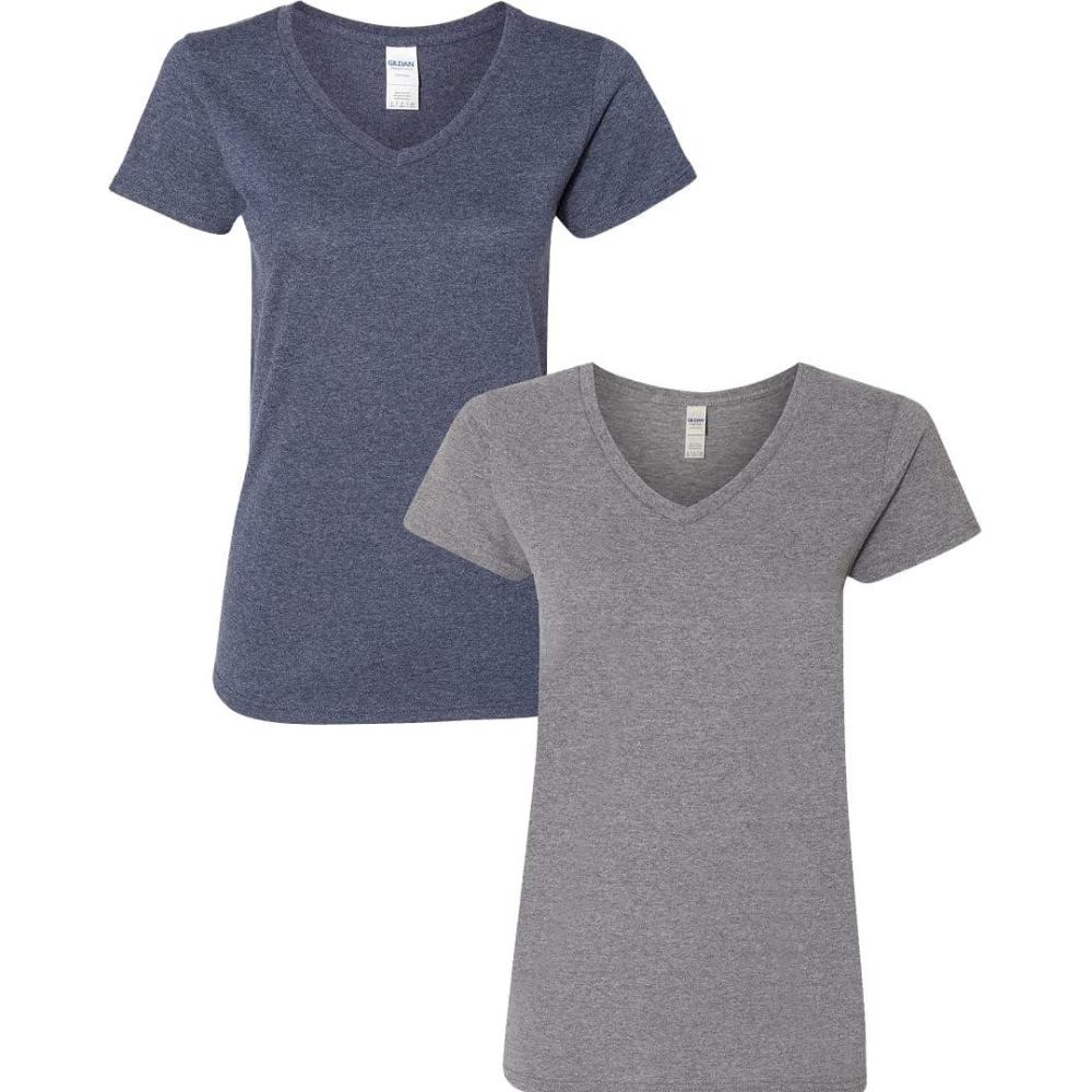 Gildan Women’s Heavy Cotton V-Neck T-Shirt, 2-Pack(Heather Navy/Graphite Heather)