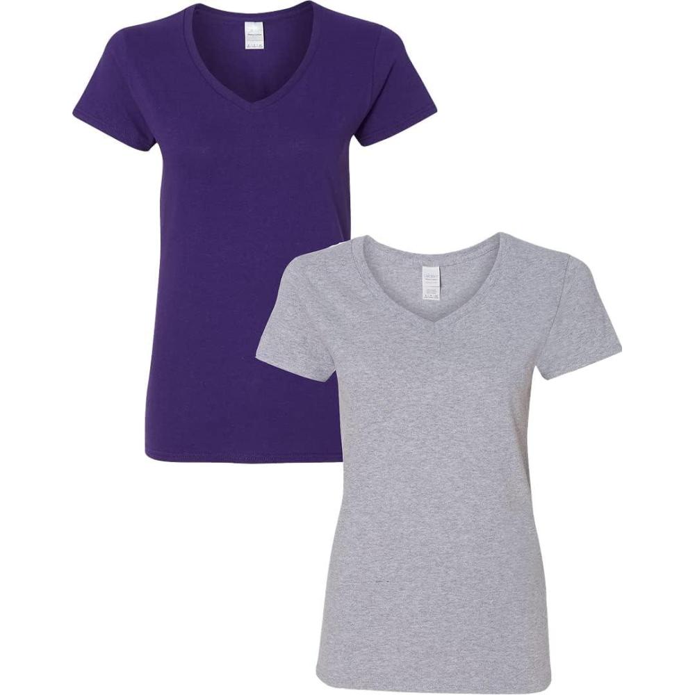 Gildan Women’s Heavy Cotton V-Neck T-Shirt, 2-Pack(Purple/Sport Grey)