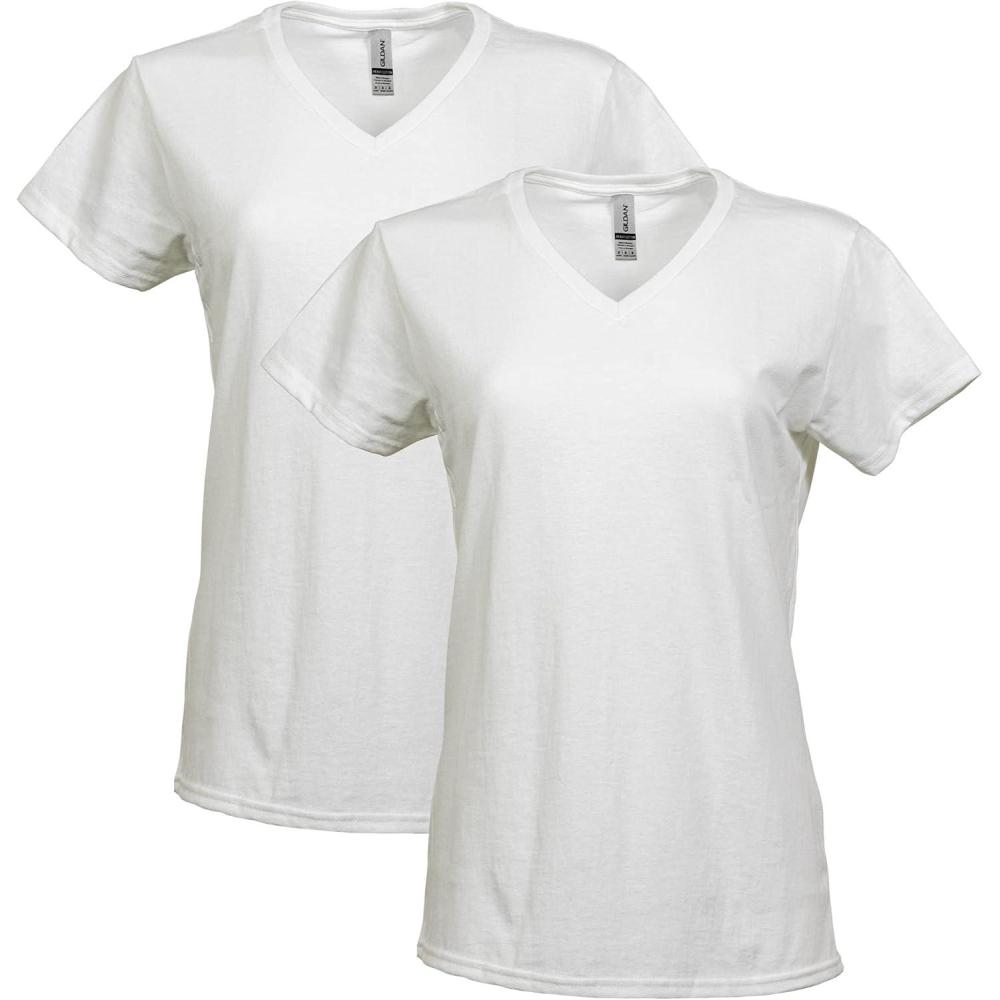 Gildan Women’s Heavy Cotton V-Neck T-Shirt, 2-Pack(White)