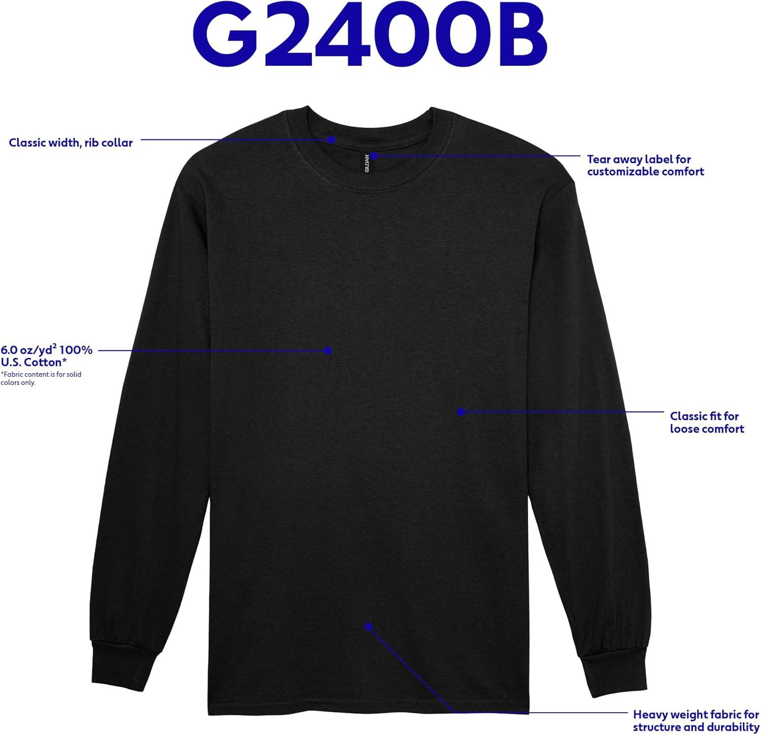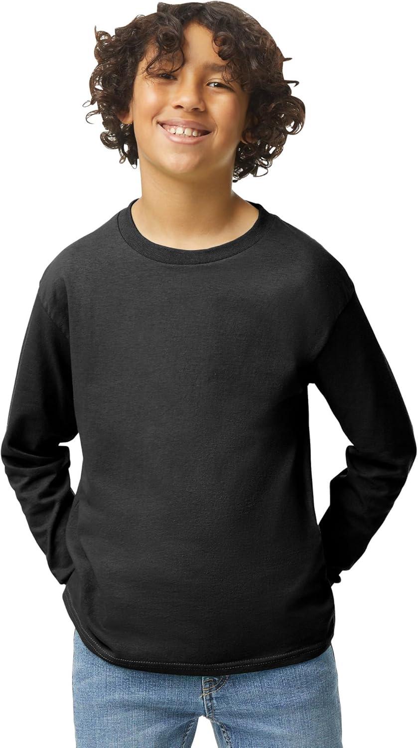 Gildan Youth Ultra Cotton Long Sleeve T-Shirt, Style G2400B, 2-Pack(Black)