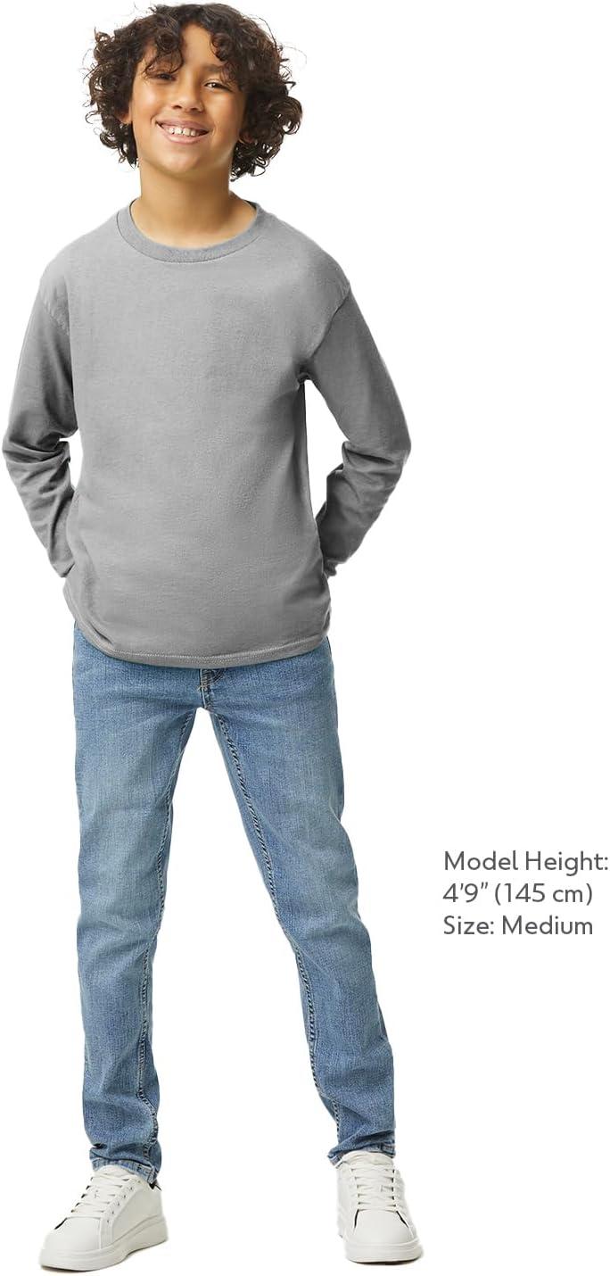 Gildan Youth Ultra Cotton Long Sleeve T-Shirt, Style G2400B, 2-Pack(Sport Gray)