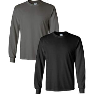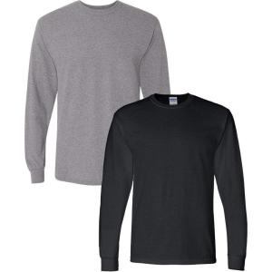 Gildan Adult DryBlend Long Sleeve T-Shirt, Style G8400, 2-Pack(Charcoal+black)