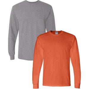 Gildan Adult DryBlend Long Sleeve T-Shirt, Style G8400, 2-Pack(Graphiteheather+orange)